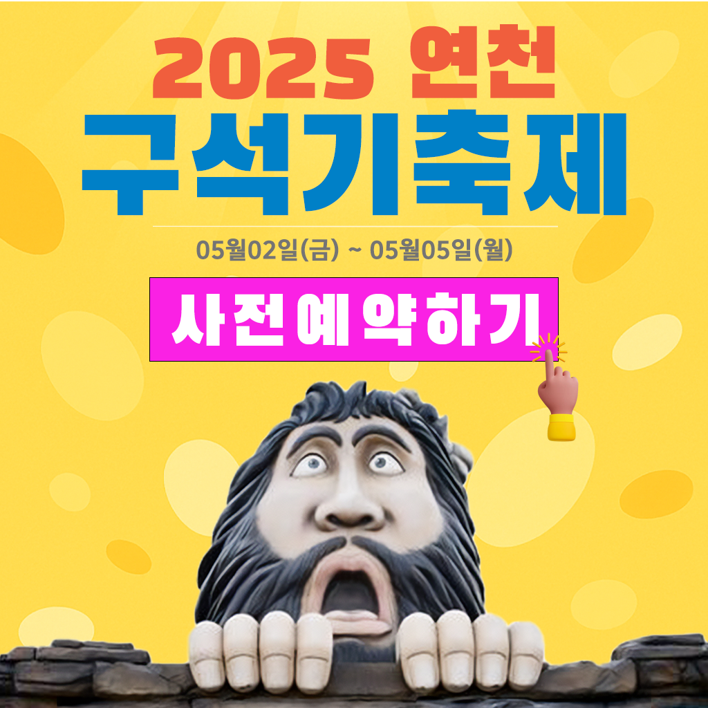 | 전곡리안 서바이벌 | 5월 2일(금) ~ 5일(월) | 12:00 / 15:00 | 구석기 올림픽 체험장 | 5,000원 |