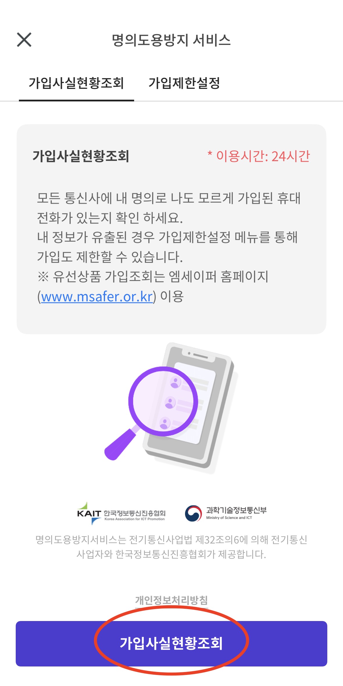 - M-safer(엠세이퍼) 사이트 접속 → '명의도용 방지 서비스' 검색 → 신청 완료